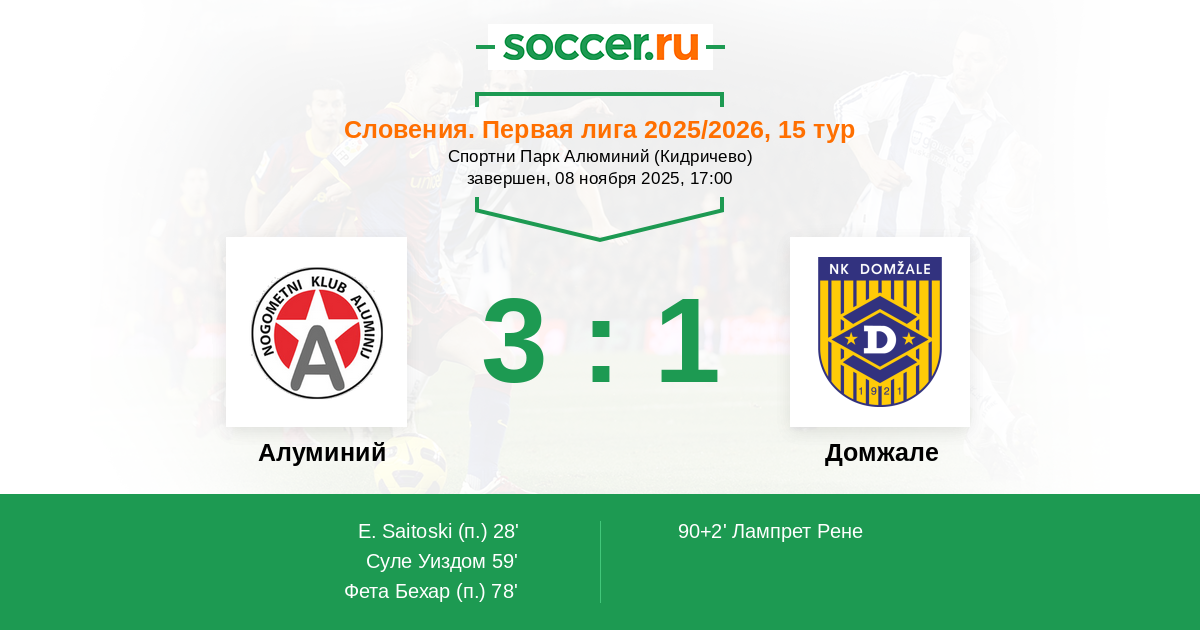 Алуминий - Домжале: обзор матча 8 ноября 2025
