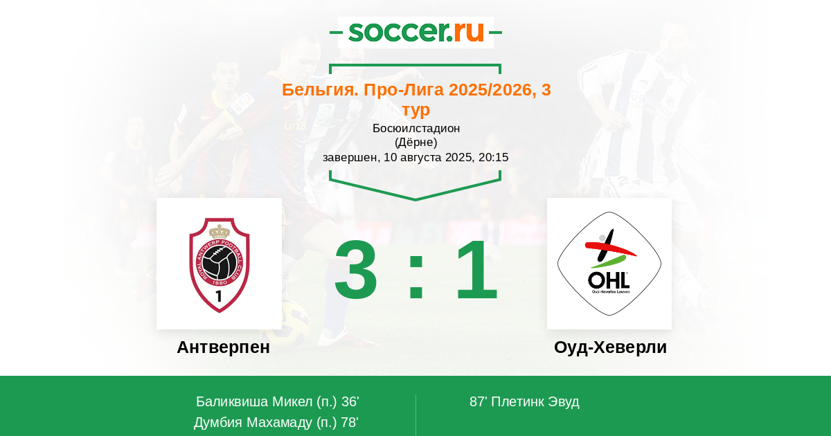 Антверпен - Оуд-Хеверли: обзор матча 10 августа 2025