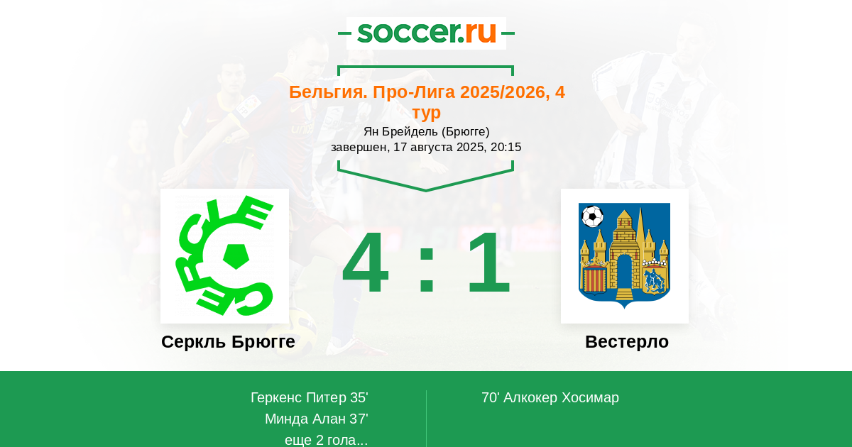 Серкль Брюгге - Вестерло: обзор матча 17 августа 2025