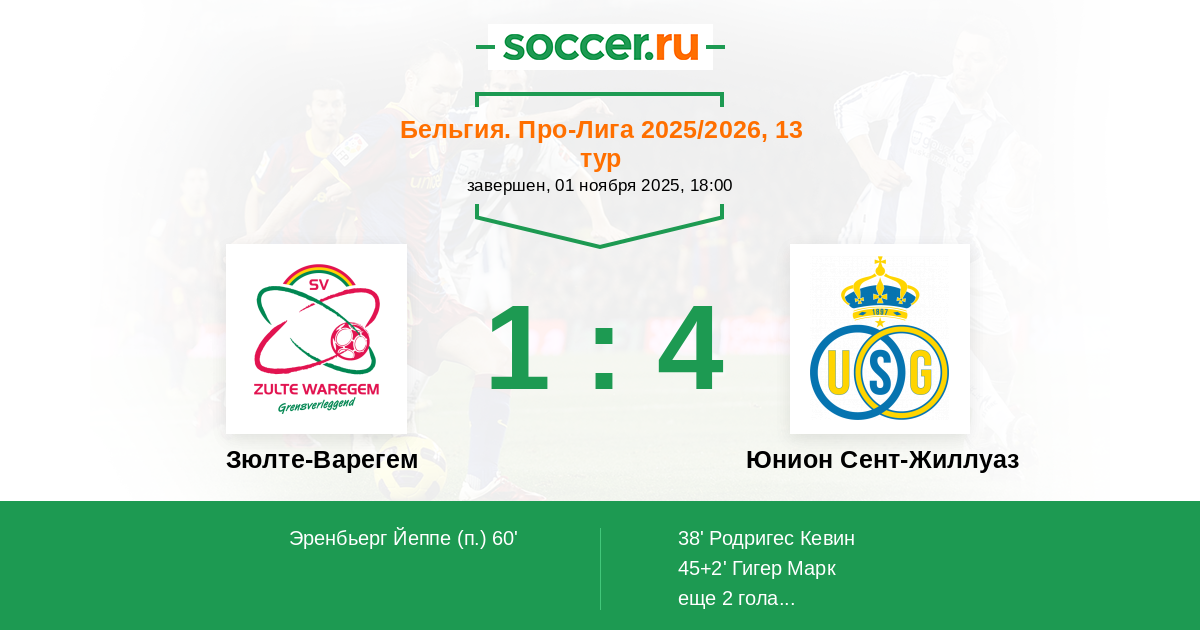 Зюлте-Варегем - Юнион Сент-Жиллуаз: обзор матча 1 ноября 2025