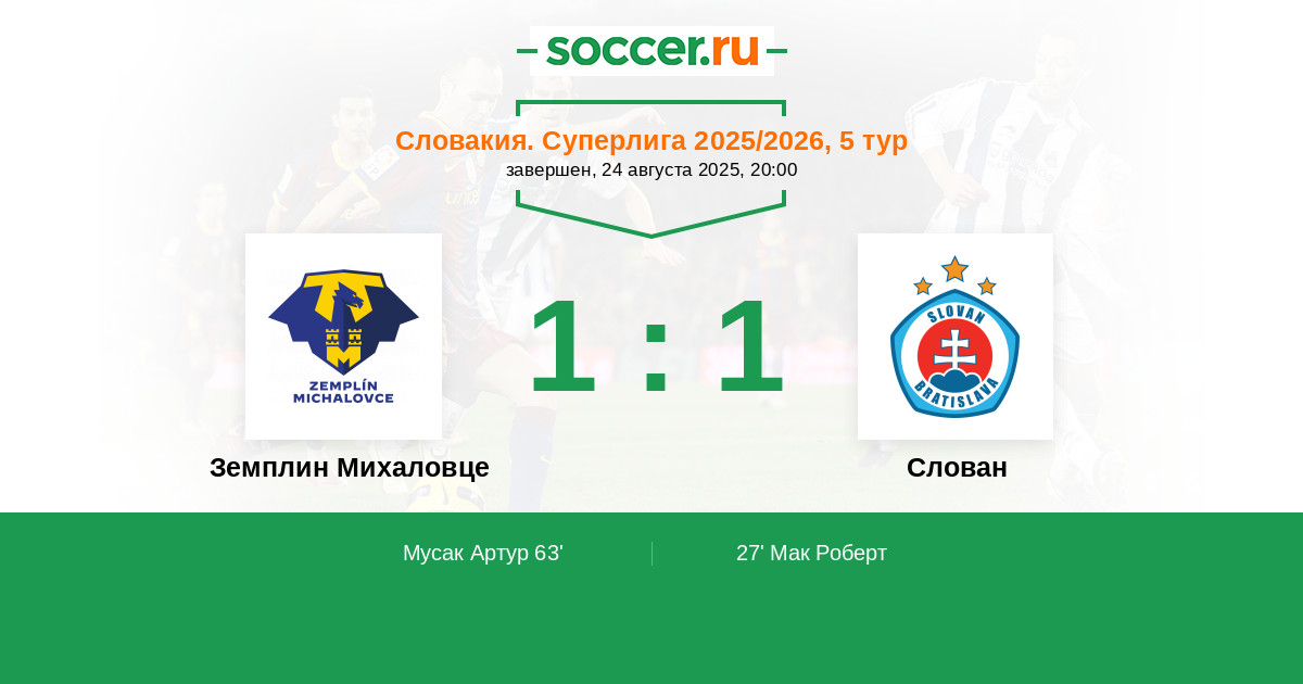 Земплин Михаловце - Слован: обзор матча 24 августа 2025