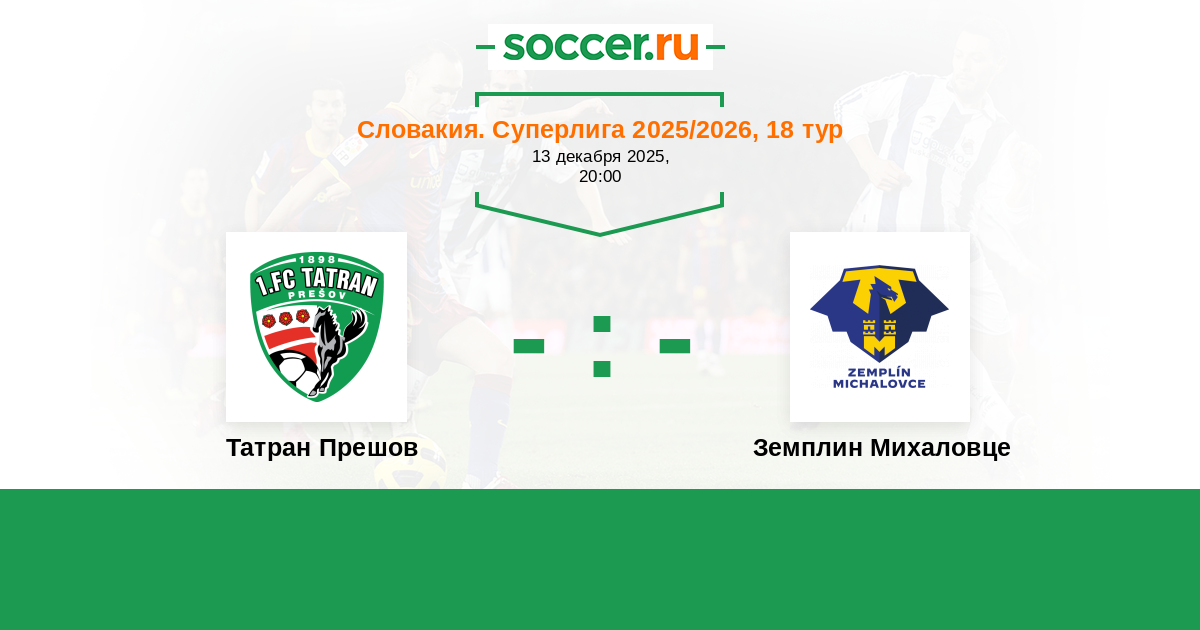 Татран Прешов - Земплин Михаловце: обзор матча 13 декабря 2025
