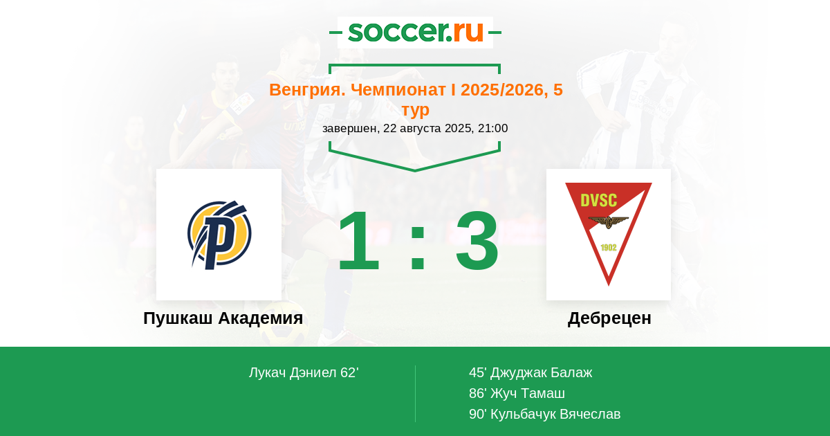 Пушкаш Академия - Дебрецен: обзор матча 22 августа 2025