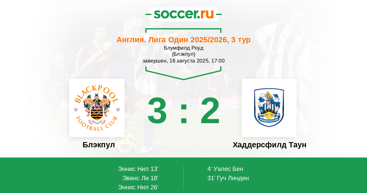 Блэкпул - Хаддерсфилд Таун: обзор матча 16 августа 2025