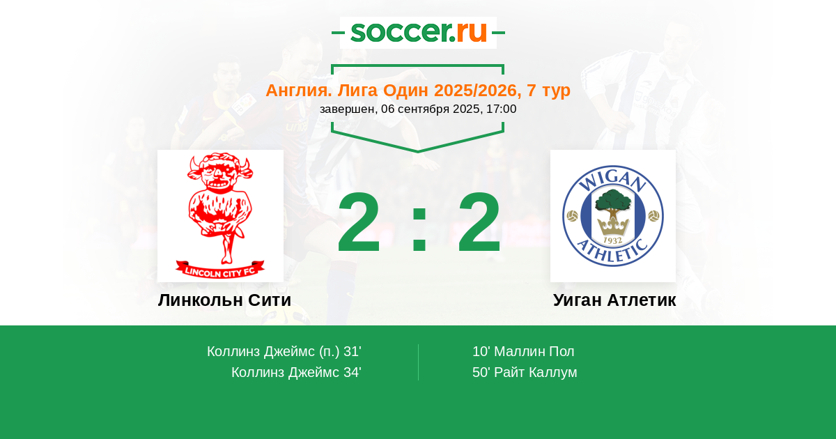 Линкольн Сити - Уиган Атлетик: обзор матча 6 сентября 2025