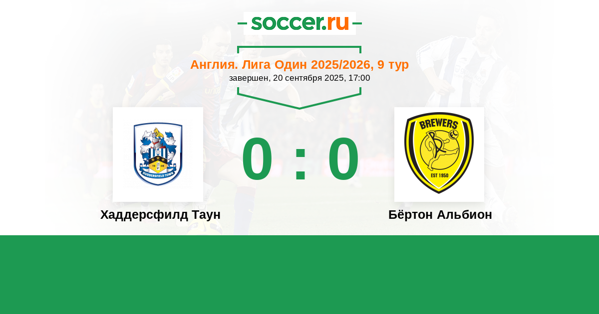 Хаддерсфилд Таун - Бёртон Альбион: обзор матча 20 сентября 2025