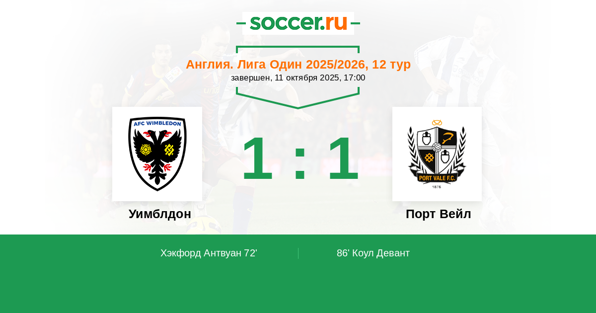 Уимблдон - Порт Вейл: обзор матча 11 октября 2025
