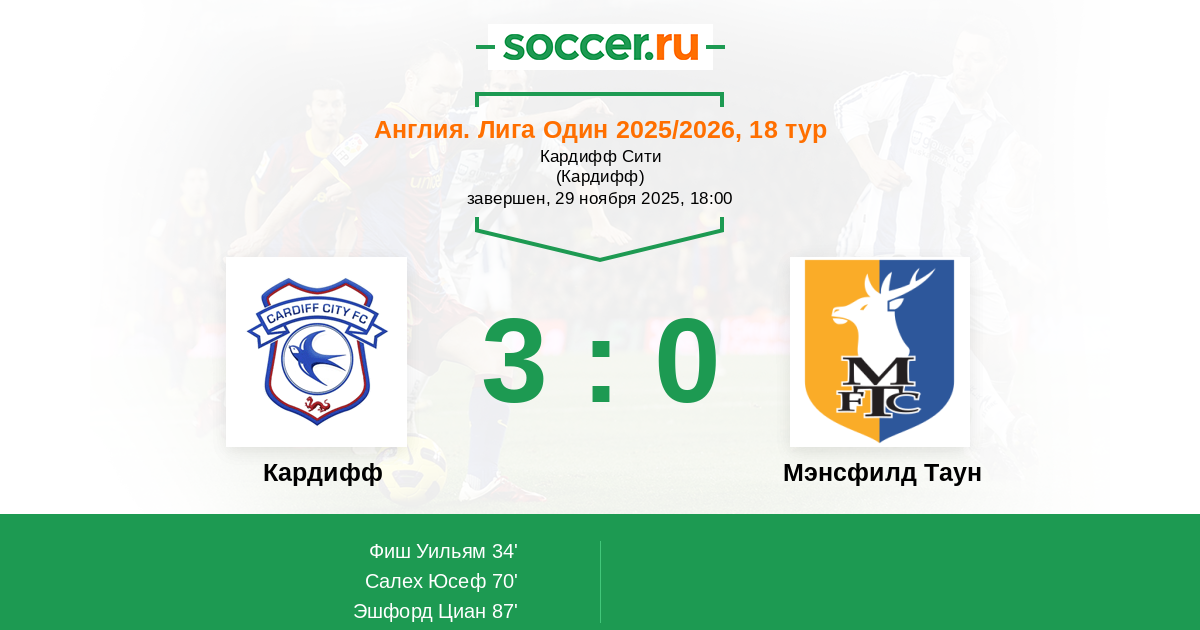 Кардифф - Мэнсфилд Таун: обзор матча 29 ноября 2025