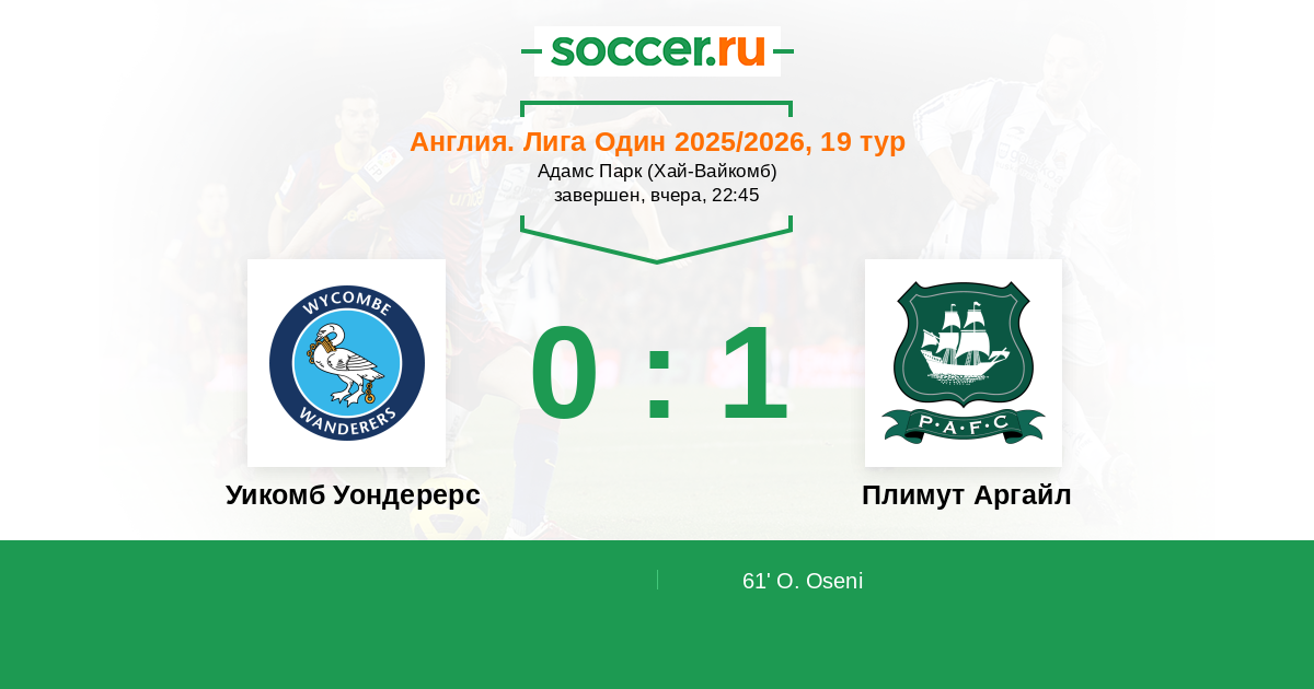 Уикомб Уондерерс - Плимут Аргайл: обзор матча 9 декабря 2025