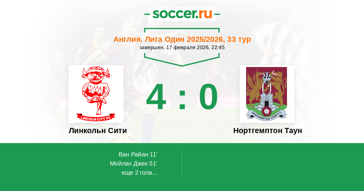 Линкольн Сити - Нортгемптон Таун: обзор матча 17 февраля 2026