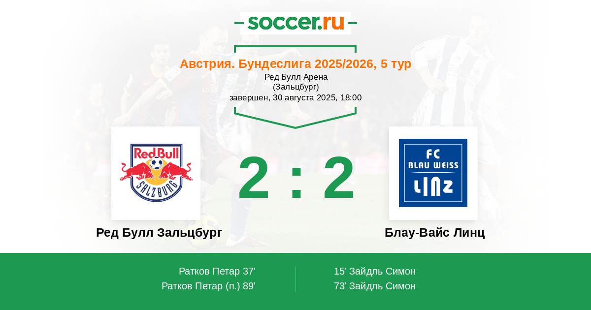 Ред Булл Зальцбург - Блау-Вайс Линц: обзор матча 30 августа 2025