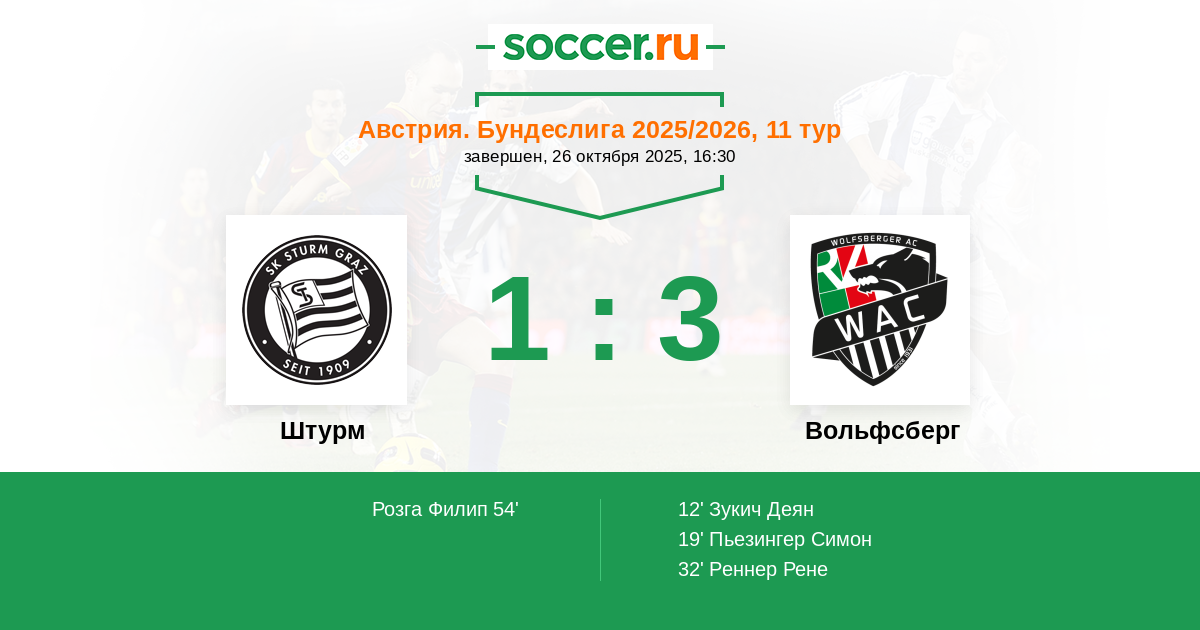 Штурм - Вольфсберг: обзор матча 26 октября 2025