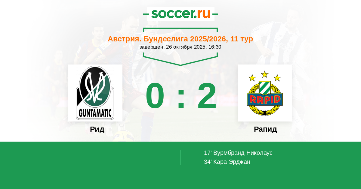 Рид - Рапид: обзор матча 26 октября 2025