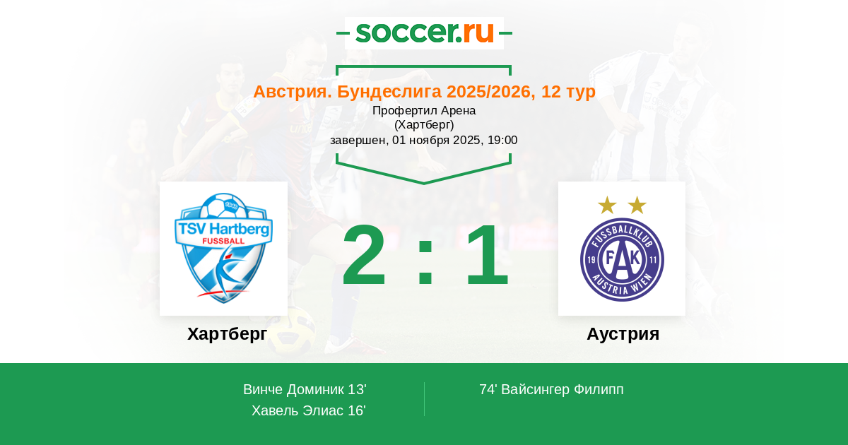 Хартберг - Аустрия: обзор матча 1 ноября 2025