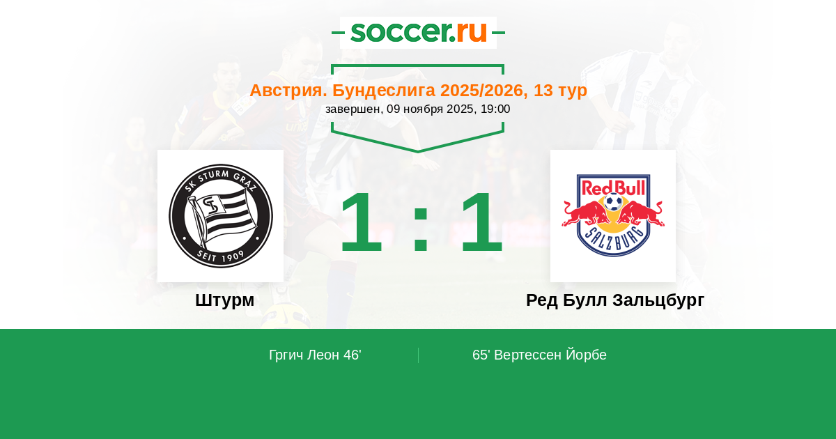 Штурм - Ред Булл Зальцбург: обзор матча 9 ноября 2025