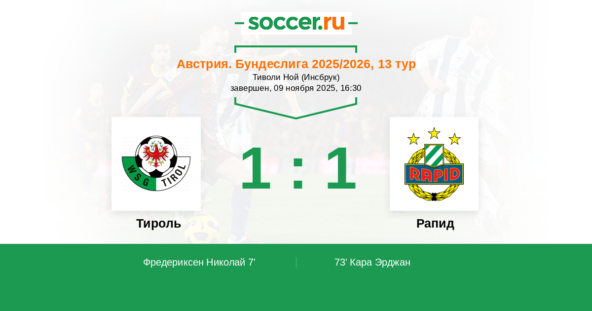 Тироль - Рапид: обзор матча 9 ноября 2025