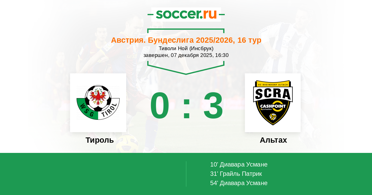 Тироль - Альтах: обзор матча 7 декабря 2025