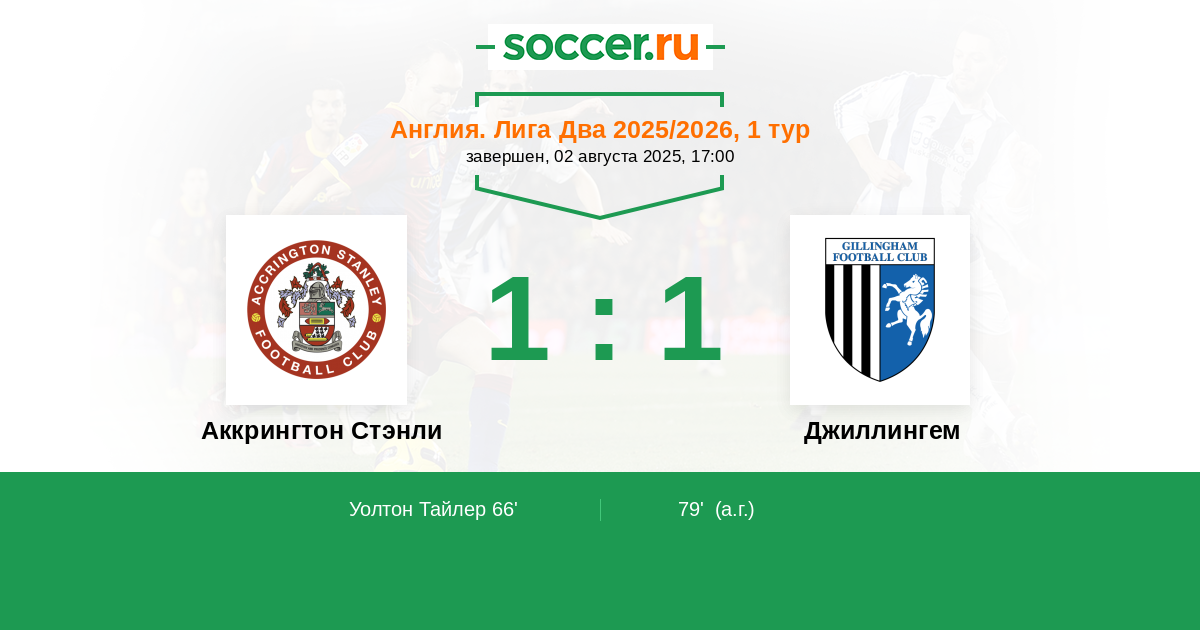 Аккрингтон Стэнли - Джиллингем: обзор матча 2 августа 2025