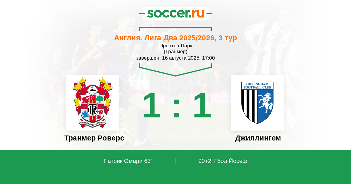 Транмер Роверс - Джиллингем: обзор матча 16 августа 2025