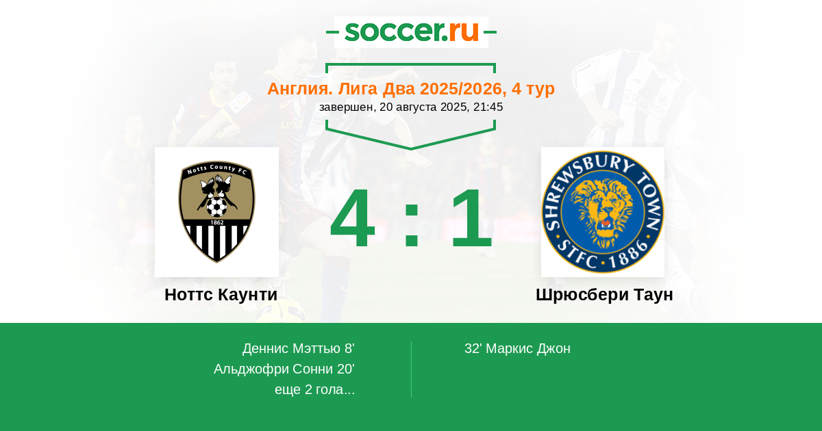 Ноттс Каунти - Шрюсбери Таун: обзор матча 20 августа 2025