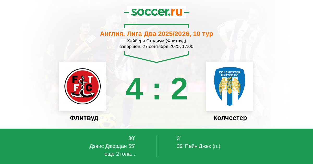 Флитвуд - Колчестер: обзор матча 27 сентября 2025
