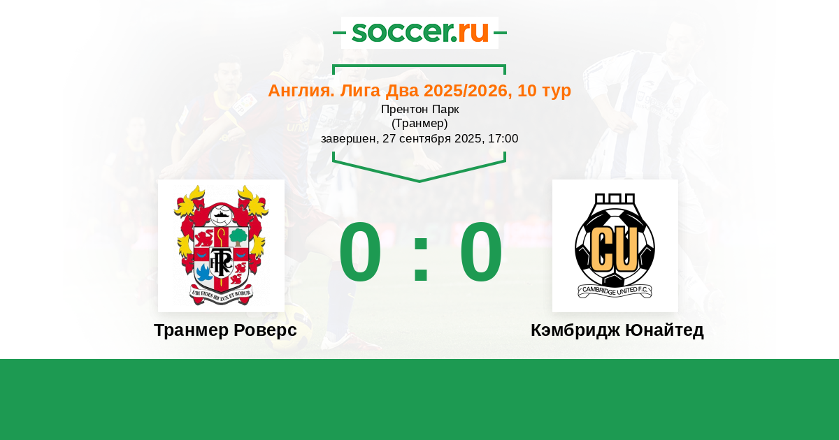 Транмер Роверс - Кэмбридж Юнайтед: обзор матча 27 сентября 2025
