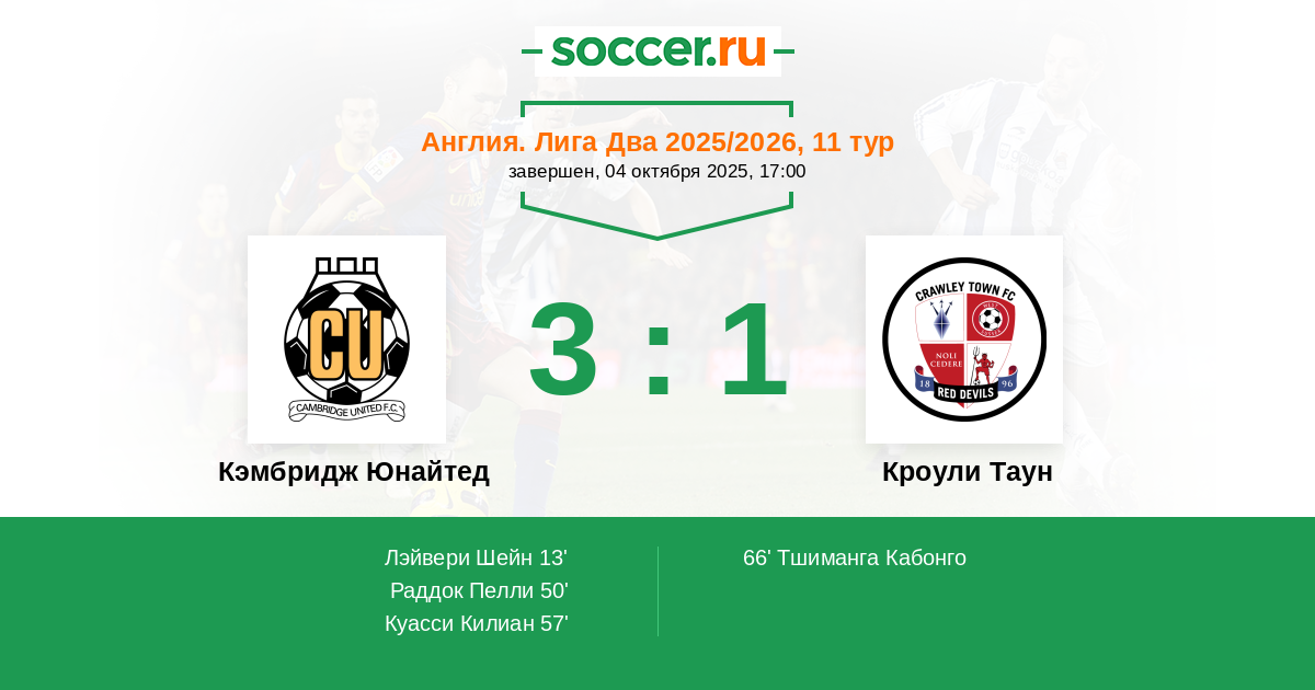 Кэмбридж Юнайтед - Кроули Таун: обзор матча 4 октября 2025