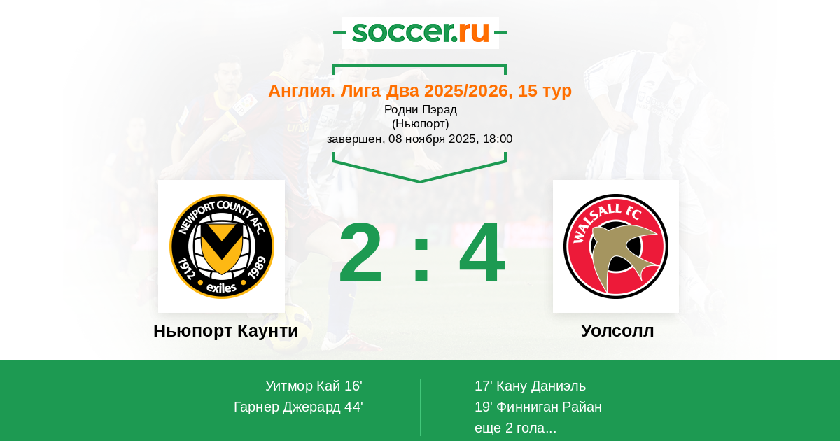 Ньюпорт Каунти - Уолсолл: обзор матча 8 ноября 2025