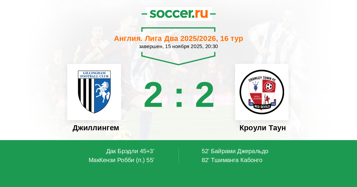 Джиллингем - Кроули Таун: обзор матча 15 ноября 2025