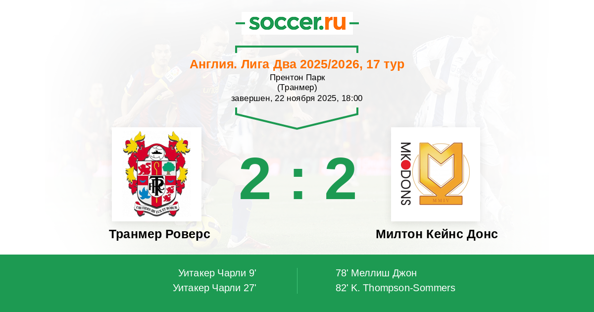 Транмер Роверс - Милтон Кейнс Донс: обзор матча 22 ноября 2025