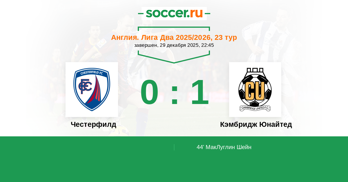 Честерфилд - Кэмбридж Юнайтед: обзор матча 29 декабря 2025