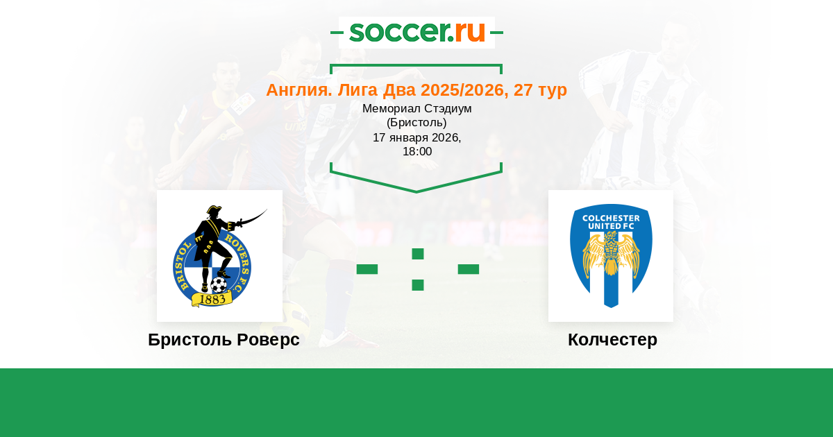 Бристоль Роверс - Колчестер: обзор матча 17 января 2026
