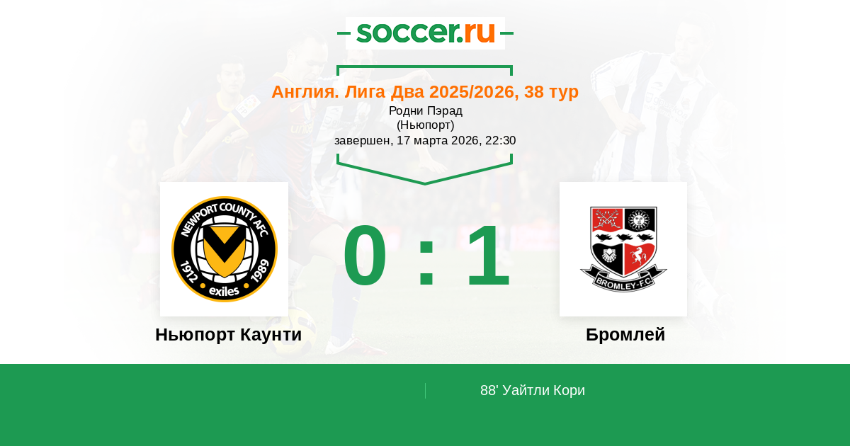Ньюпорт Каунти - Бромлей: обзор матча 17 марта 2026