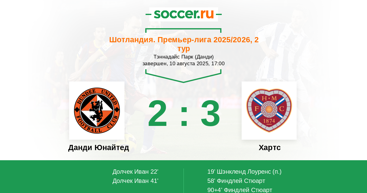Данди Юнайтед - Хартс: обзор матча 10 августа 2025