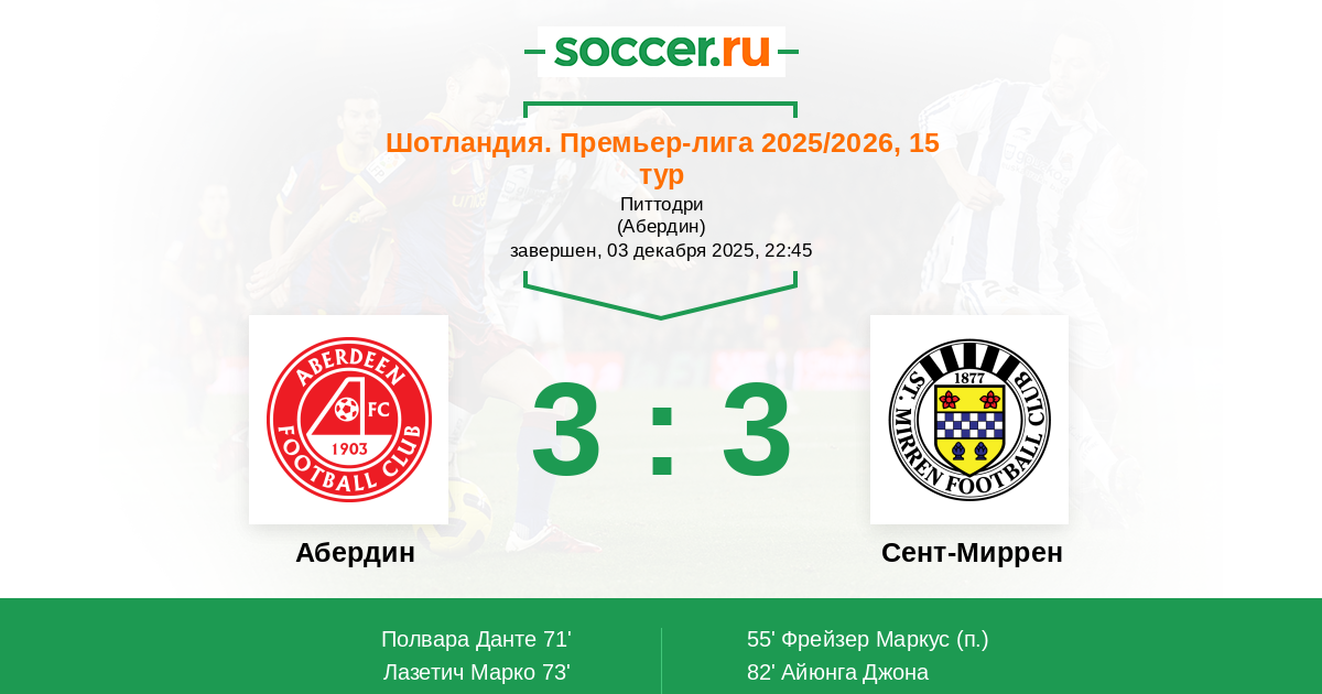 Абердин - Сент-Миррен: обзор матча 3 декабря 2025