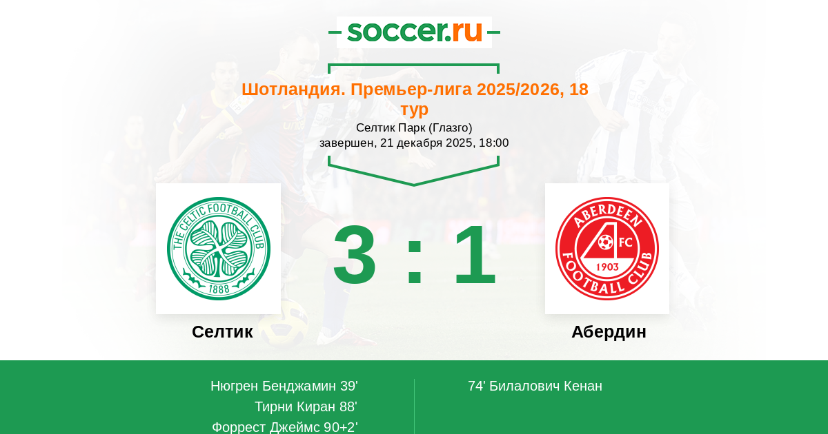 Селтик - Абердин: обзор матча 21 декабря 2025