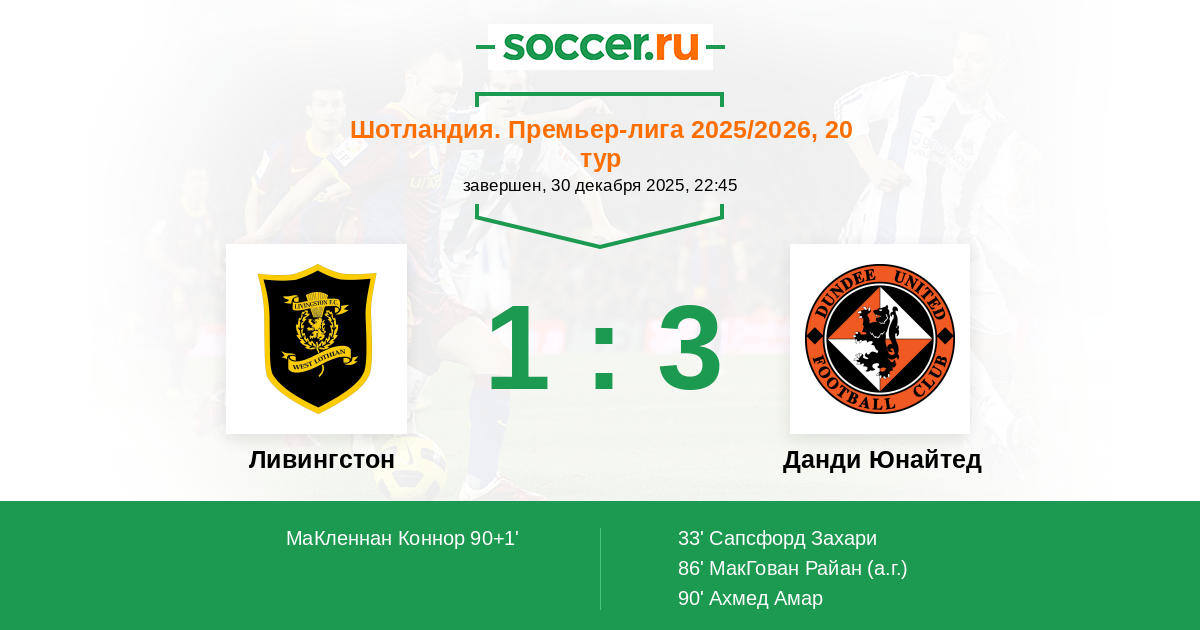 Ливингстон - Данди Юнайтед: обзор матча 30 декабря 2025