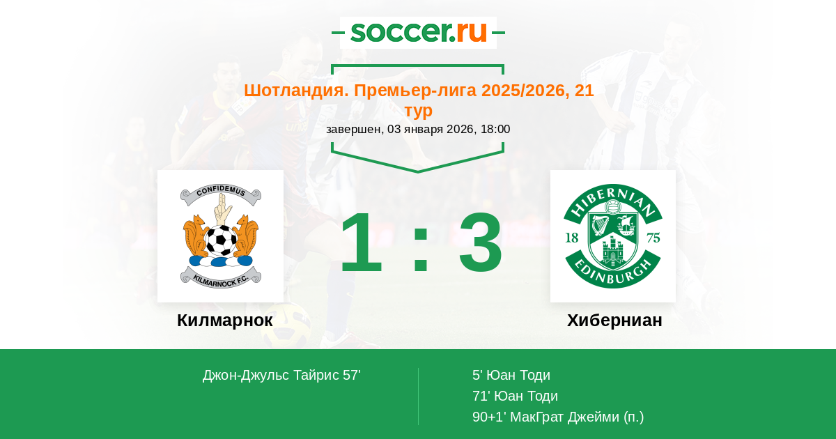 Килмарнок - Хиберниан: обзор матча 3 января 2026