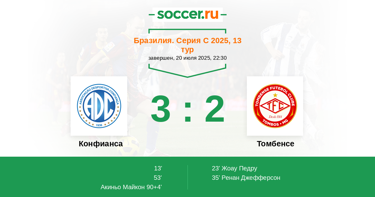 Конфианса - Томбенсе: обзор матча 20 июля 2025
