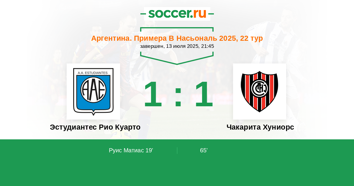 Эстудиантес Рио Куарто - Чакарита Хуниорс: обзор матча 13 июля 2025