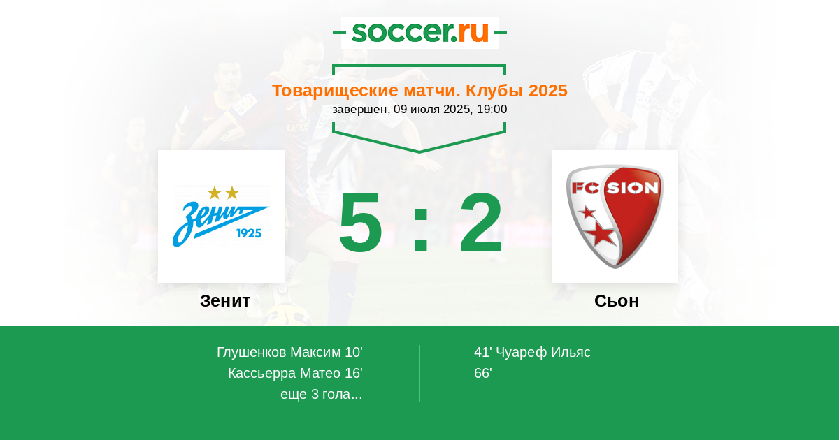 Зенит - Сьон: обзор матча 9 июля 2025