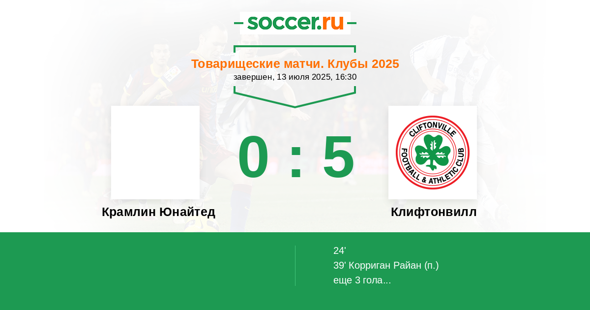 Крамлин Юнайтед - Клифтонвилл: обзор матча 13 июля 2025