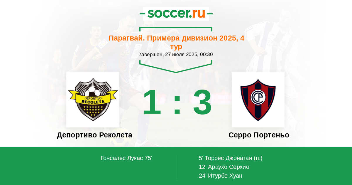 Депортиво Реколета - Серро Портеньо: обзор матча 27 июля 2025