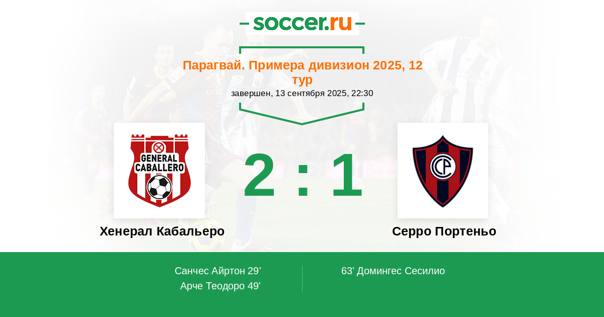 Хенерал Кабальеро - Серро Портеньо: обзор матча 13 сентября 2025