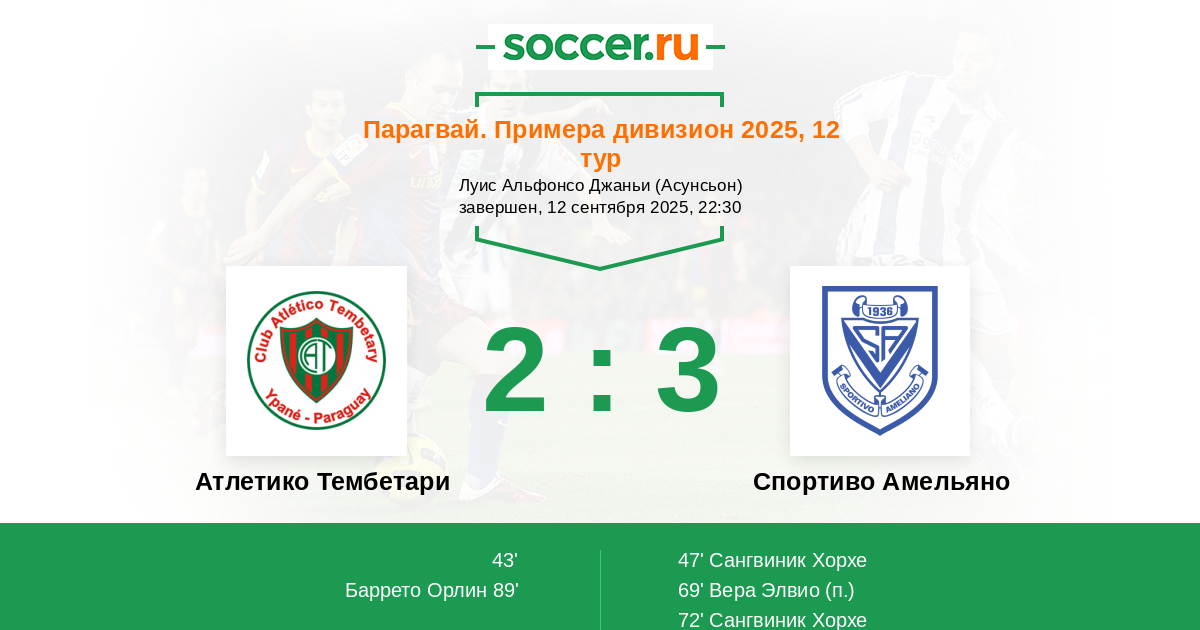 Атлетико Тембетари - Спортиво Амельяно: обзор матча 12 сентября 2025