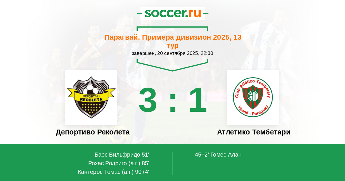 Депортиво Реколета - Атлетико Тембетари: обзор матча 20 сентября 2025