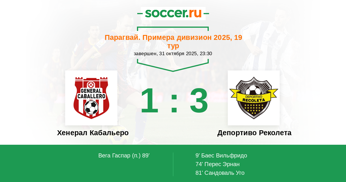 Хенерал Кабальеро - Депортиво Реколета: обзор матча 31 октября 2025