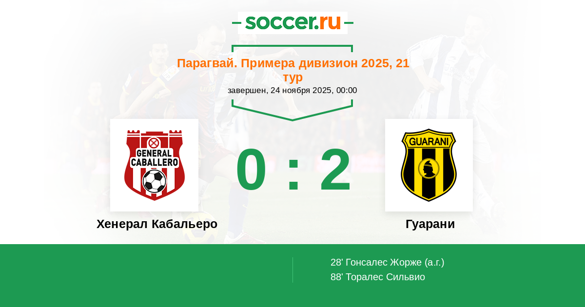 Хенерал Кабальеро - Гуарани: обзор матча 24 ноября 2025