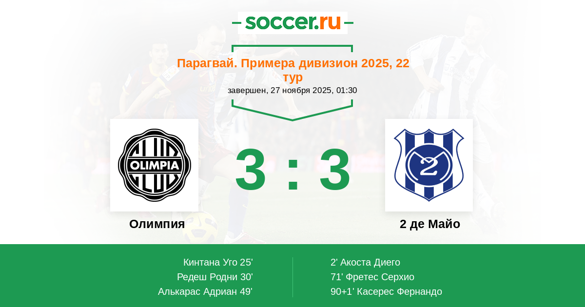 Олимпия - 2 де Майо: обзор матча 27 ноября 2025