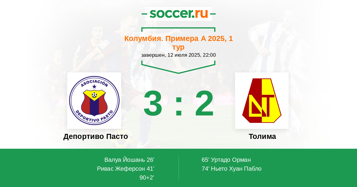 Депортиво Пасто - Толима: обзор матча 12 июля 2025